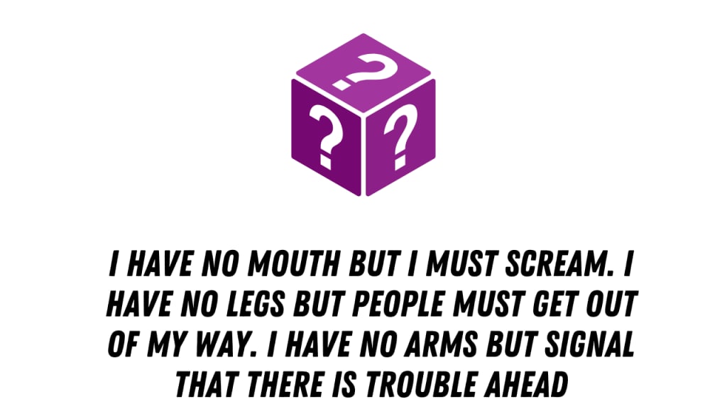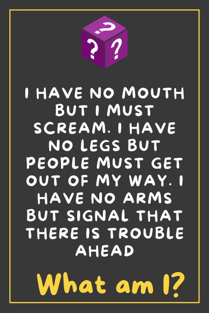 > “I have no mouth but I must scream. I have no legs but people must get out of my way. I have no arms but signal that there is trouble ahead. What am I?”