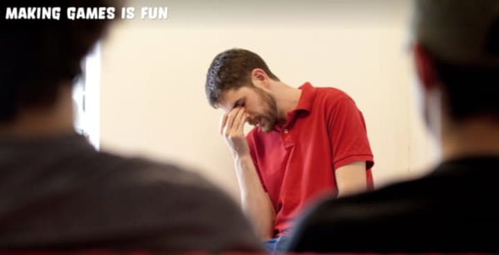 Fun smiles mix in with focused stares with a few face palms mixed in for good measure. Making games is fun, sure, but it's a truckload of hard work to live up to the expectations of such a hyped game.