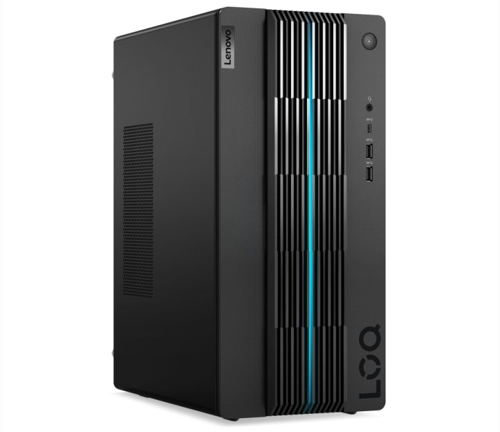 For novice gamers looking for a desktop PC with future-proof expandability, bold looks, and outstanding out-of-the-box performance, the Lenovo LOQ Tower is the clear pick. The front of the roomy 17L chassis features blue-accented 2D and 3D striped patterns that pay homage to the gaming heritage of the Lenovo Legion. These patterns not only look good, but they also increase ventilation, allowing the latest NVIDIA RTX 40-Series GPUs and up to the 13th Gen Intel Core i7 CPU to breathe during intense gaming sessions. Up to a 32GB 3200MHz DDR4 RAM module is available, and a 2TB 3.5" 7200RPM SATA HDD2, a 1TB PCIe NVMeTM TLC M.2 2280 SSD2, and support for up to one SSD and two HDDs are all available as additional storage options (each, sold separately). Use Wi-Fi 6e7 or the 2.5 GHz LAN port to connect to the internet. In a stylish chassis that provides room for the gamer to expand, the Lenovo LOQ Tower 17IRB8 crams competitive hardware.