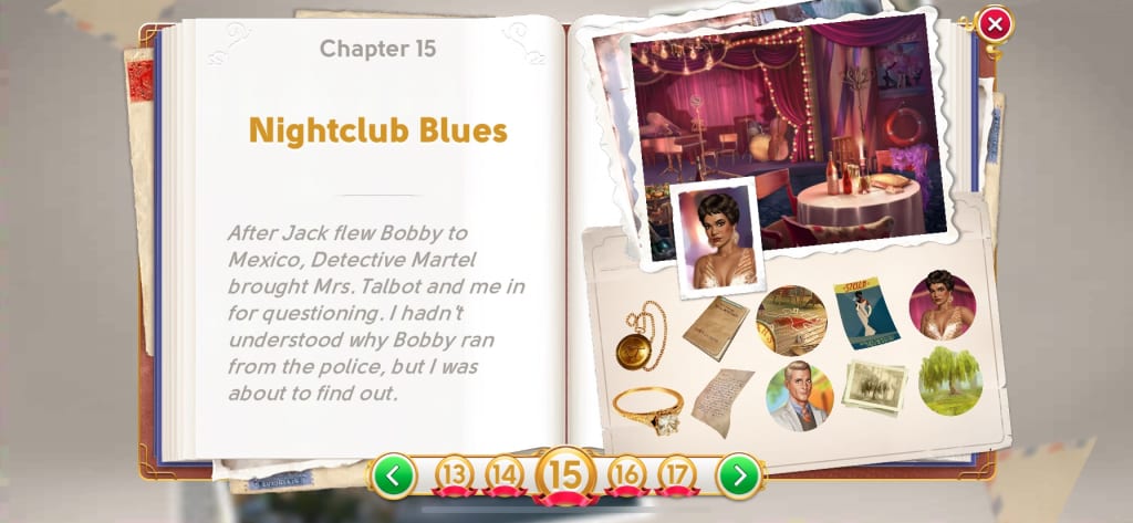 If you want to read the entire story from the app June's Journey, created and written by Wooga, without having to scroll through all each chapter to read the content, here are all of the clues and the conversations that go with each clue for chapter 15. More chapters will be posted soon.