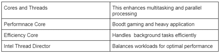 Performance and Efficiency Cores: It intelligently balances tasks, running high-performance cores for demanding applications and efficiency cores for lighter tasks. This ensures better energy efficiency and speed.