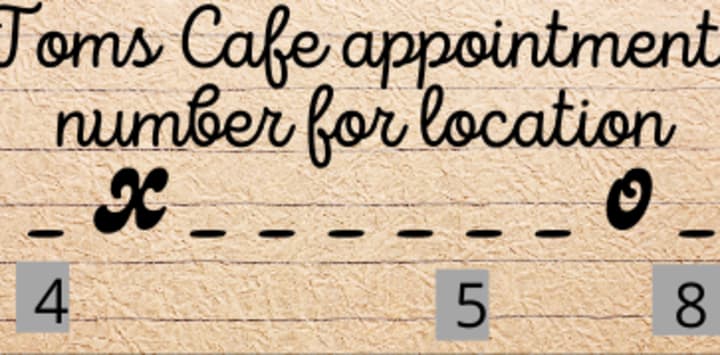 More interested than ever and all I had was time on my side so I turned to the first page with writing. There in what looked like the same black ink was “Tom’s Cafe appointment number for location” written in cursive handwriting, then a _ X _ _ _ _ _0 _” and under 3 of the lines there were 3 different numbers in a shaded grey. 4 under the first line, 5 under the seventh line and 8 under the last line.