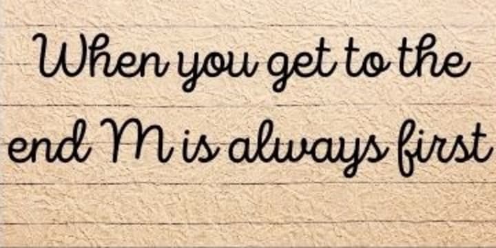 I flipped to the last page that was against the back cover to see if there were any clues I missed and it said “When you get to the end M is always first”