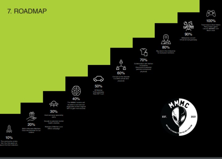Each NFT will have varying levels of access and activities through the smart contract tied to each investment, giving them "utility" through metadata. MMMC is branching out into high-end fashion, Partying 2 Earn, and events and supporting organizations chosen by our members.
