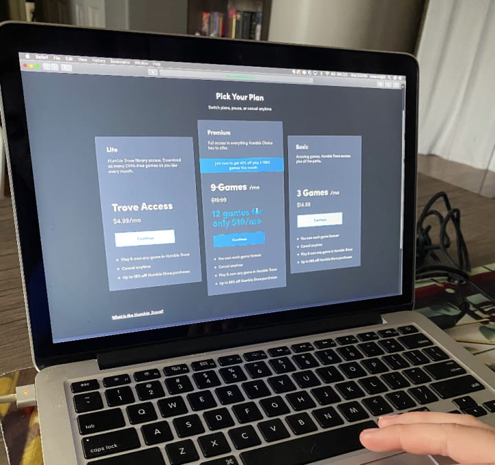 Now, let's talk more about these tiers. First up, we have the "Lite" tier. You get access to download as many DRM-free games that Humble has in their game library in this tier! This tier is only $4.99/ month, which is a complete steal! So many games for such a low price is insane! Next up is the "Basic" tier. Within this tier, you get access to the entire Humble Trove game library just like in the "Lite" tier, but on top of that, you get three amazing games! These games rotate every month, so you always have something new and marvelous to play! This tier is only $14.99 a month, which is still crazy when many new triple AAA titles cost $60 for just one game! Humble Bundle is changing the way we purchase games and making gaming accessible to all while supporting charity! Last but not least is the "Premium" tier! As I mentioned, earlier this is the most popular tier! You not only get everything in the "Lite" tier and "Basic" tier, but you also get nine additional games on top of that!