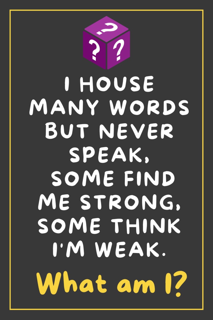 Books are magical portals to knowledge, imagination, and mystery. These riddles capture the wonder and charm of books—from turning pages to hidden tales. Whether you're a bookworm or just flipping through, you'll enjoy clever clues and brain teasers that celebrate the beauty of reading and storytelling.