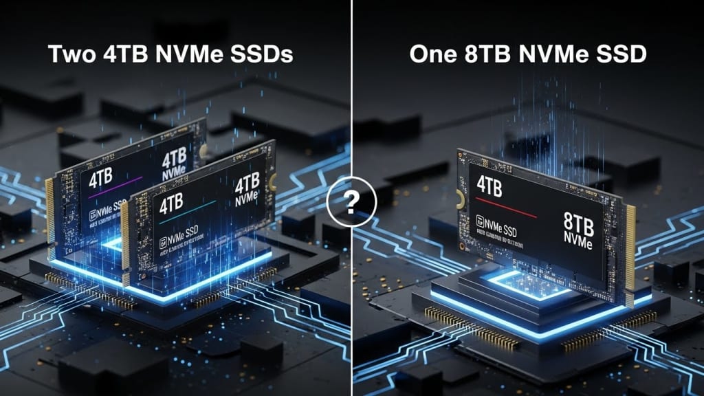 Should I buy two 4TB or one 8TB NVMe SSD? Learn the pros, cons, performance, cost, reliability, and best use cases to make the right storage decision.