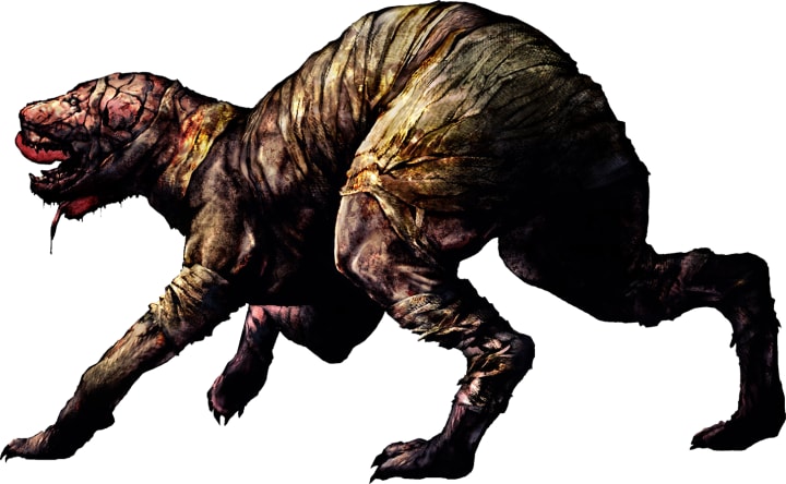 These are similar to the Groaners/Wormheads of the first Silent Hill, except these beasts have two heads, or more specifically, have a split head. Masahiro Ito, the designer of Silent Hill's monsters for the first few games, has stated the dogs to be like Cerberus, the watchdogs of Hell.