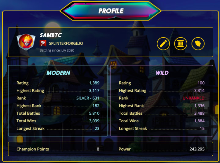When you go to your profile section in Splinterlands it throws up a detailed scorecard showing since how long you have been playing. How many battles you have won, how many lost. Currently at what level you are, your winning streak etc. Good that they don’t show the losing streak, would have been a bit embarrassing.