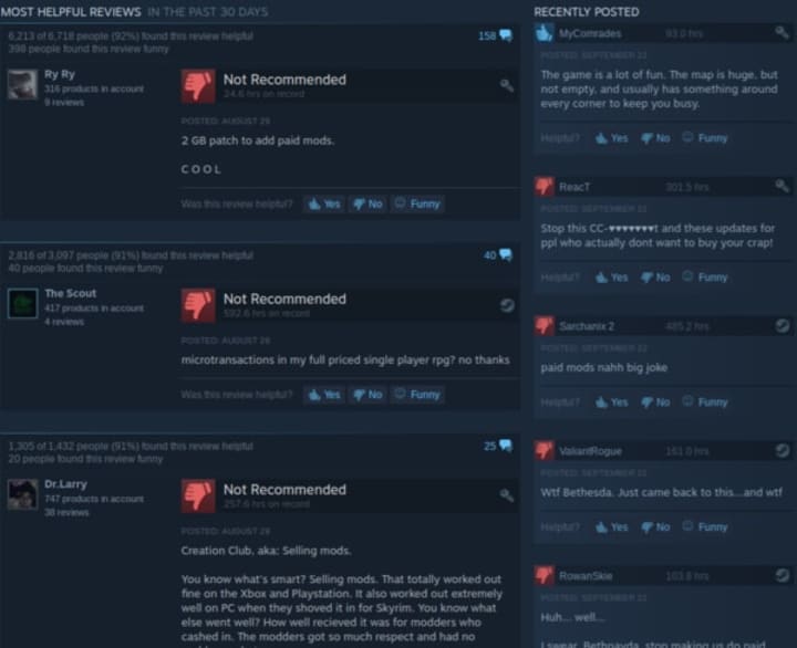 Fallout 4 Review Bombing after Creation Clubs launch. [Credits: Valve]