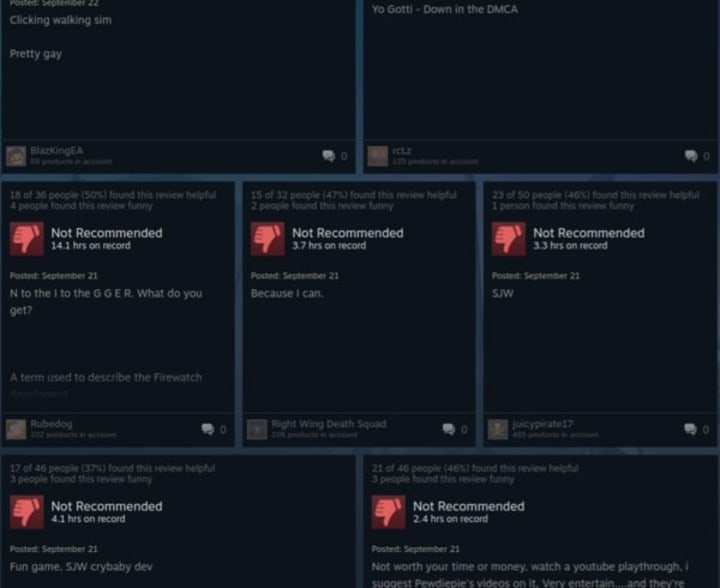 In recent days, Steam has implemented a new tool in order to help combat these types of reviews. A recent issue with review bombing has been hitting Campo Santo's game #Firewatch after the most recent controversy with Felix "PewDiePie" Kjellberg.