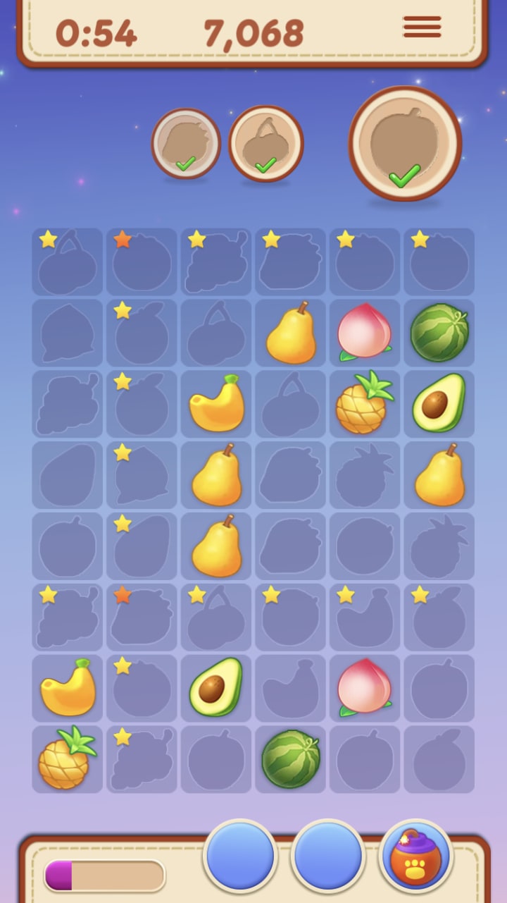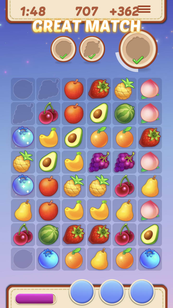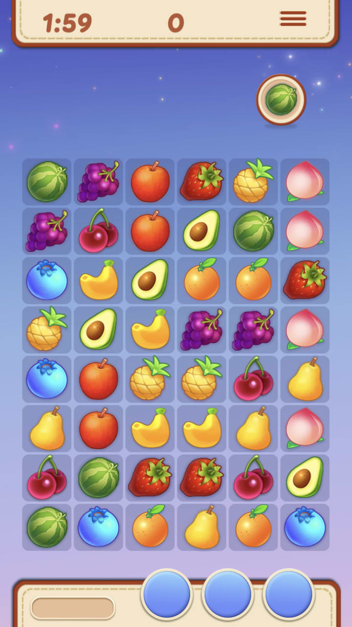 Fruits that are situated on the edge of the game board can be matched if they are both on the same side. In the case below, the watermelons and blueberries were both on the side of the game board, which allowed me to easily match them.