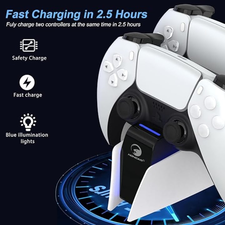 The PS5 Charging Station provides a secure and stable docking platform for your controllers, ensuring that they remain in place and protected while charging.