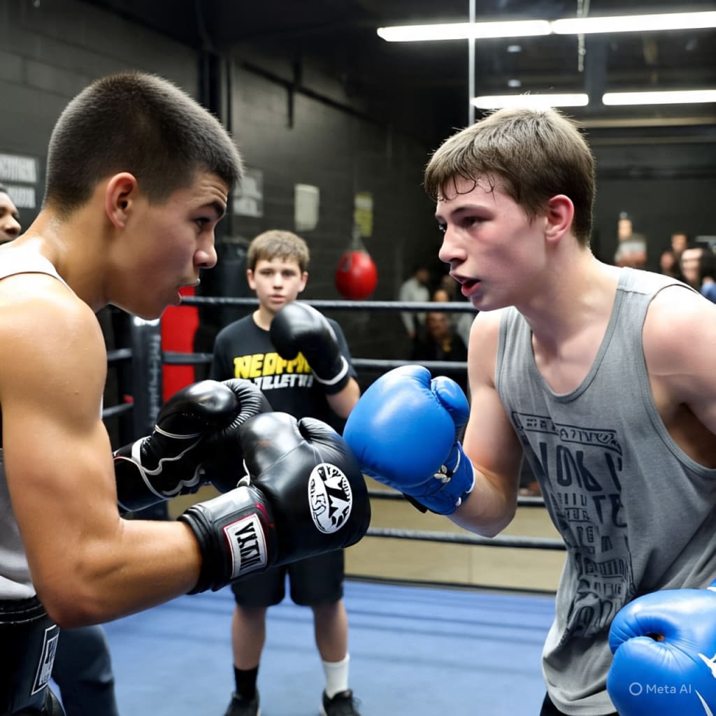 The community center was packed. Banners waved. Music thumped. The scent of popcorn mixed with the sharp tang of sweat and adrenaline. The ring glowed under harsh white lights, and all eyes were on the two boys who walked in not as enemies, but as warriors.