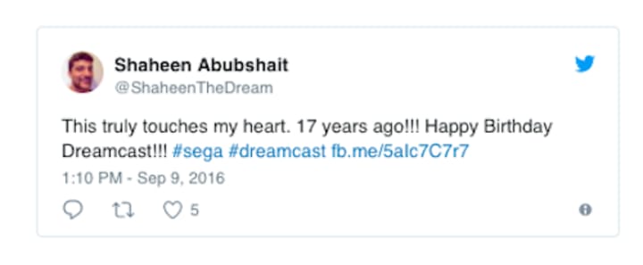 Sega wanted the Dreamcast to be a game changer and, in a lot of ways, it was. The dream didn't last long, though, as the system quickly lost steam leaving us with a lot of lost potential for the games it could have had. Despite it's rise and sudden fall, a lot of people look at the system fondly. This includes the people who worked on it such as Peter Moore, former COO of Sega of America, who tweeted a commemoration to his gone-to-soon baby.