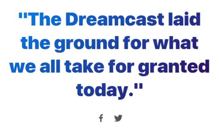 Despite what happened, the Dreamcast laid down a lot of good ideas that eventually made its way to later generations. It might not have been there for the long haul, but it definitely left a mark while it stuck around. Once again, Peter Moore said it best: