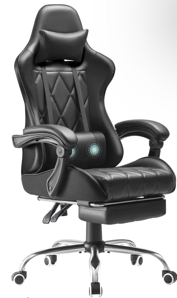 If you’re seeking a little extra pampering, the Homall Gaming Chair might just be your ideal match. This chair is designed with a retractable footrest and a massage lumbar cushion that gently vibrates to relieve back tension—a real treat for anyone who spends hours at a time in front of a screen. Its high backrest and adjustable headrest encourage proper posture, while the swivel feature allows you to easily move and reposition. Made from resilient PU leather, this chair stands the test of time. Whether you’re gaming or working, the Homall Gaming Chair offers the added luxury of massage functionality, making it a top-tier option for those who want more than just the basics.