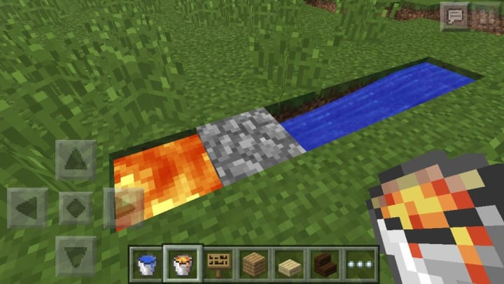 Didn’t start with cobblestone? No problem. Setting up a cobblestone farm in a T shaped block- four across and one down- will help you generate all the cobblestone you’ll need to build. Cobblestone will appear when a flowing lava block touches a water block (similar to how a source lava block creates obsidian when water touches it). Cobblestone is one of the beginning resources in the game, and certainly one of the most valuable for building.