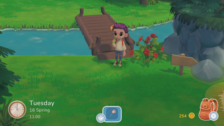 As you progress further in the game, you unlock new villagers, more land to explore, NPCs that will open up shop, and tons of various items. To make gold you can go fishing, which has an integrated minigame feature, use the net to catch insects, grow crops or collect various items strewn about the world and sell them. You can also help out the villagers to receive a reward for your efforts.
