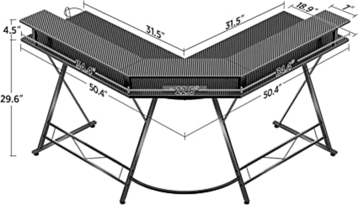 With dimensions of 50.4" x 50.4" x 18.9", this gaming desk offers a spacious and versatile surface. Whether you need room for multiple monitors, gaming activities, or home office work, this desk has you covered. Need even more space? Simply combine two L-shaped desks to create a "U" shaped workstation that accommodates all your gaming essentials.
