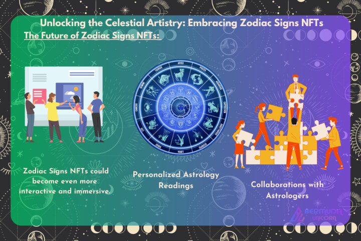 As NFTs continue to evolve and gain traction in the art world, the future of Zodiac Signs NFTs appears promising. Technological advancements will likely lead to even more immersive and interactive experiences tied to our astrological identities. Zodiac Signs NFTs offer a captivating fusion of astrology, digital art, and collectible culture. These celestial tokens serve as visual expressions of our astrological identities, connecting us to the cosmic forces that shape our lives. With their mesmerizing artistry and growing popularity, Zodiac Signs NFTs are poised to leave an indelible mark on the digital art landscape, captivating collectors and enthusFrom personalized astrology readings to augmented reality (AR) representations of Zodiac signs, the potential for innovation knows no bounds. Zodiac Signs NFTs will continue to captivate collectors and enthusiasts, inspiring artists to push the boundaries of digital artistry.