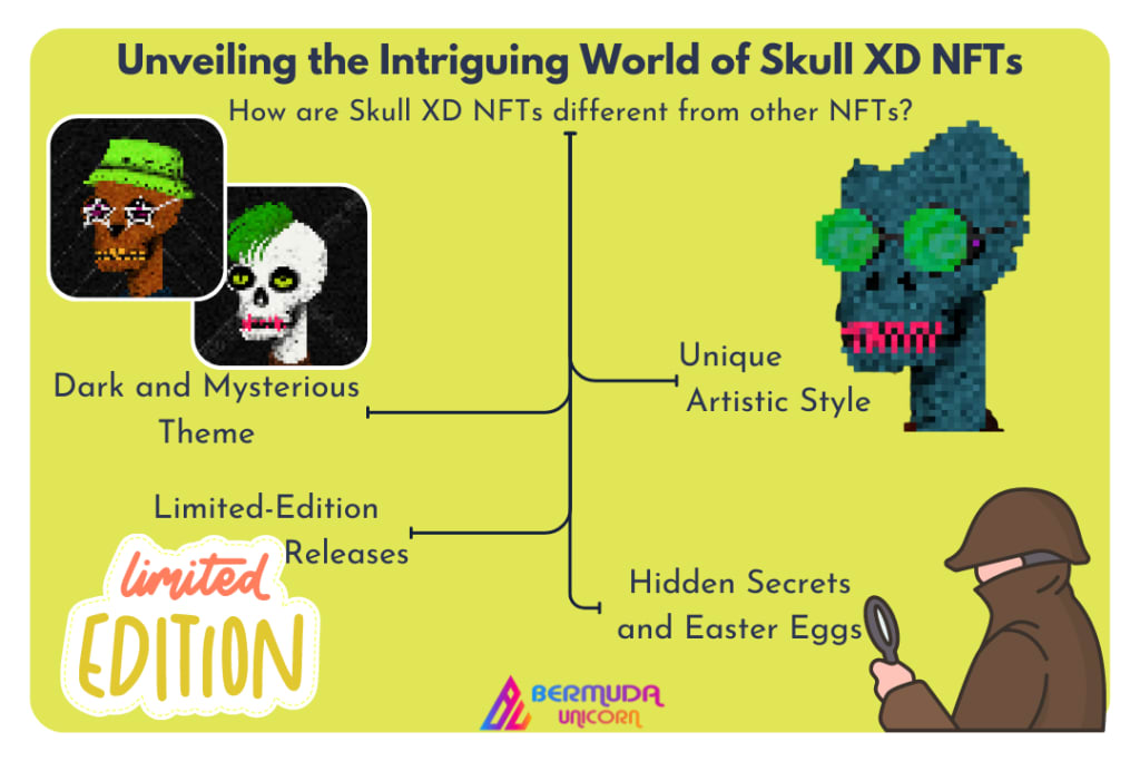 While the NFT market is filled with a wide variety of NFT collections, Skull XD NFTs offer a unique aesthetic and concept that sets them apart. The intricate skull designs, infused with elements of whimsy and imagination, create an intriguing and captivating appeal. Unlike other NFTs that may focus on different themes or styles, Skull XD NFTs revolve around the enigmatic allure of skulls, creating a distinct niche within the broader NFT landscape.