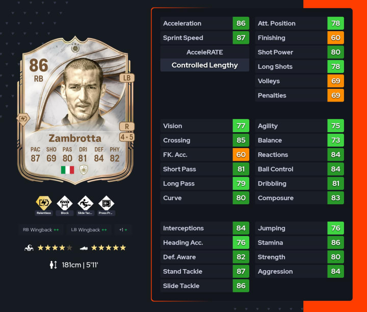 - 5★ Weak Foot & 86 Stamina: Reliable on overlapping runs and long sprints.