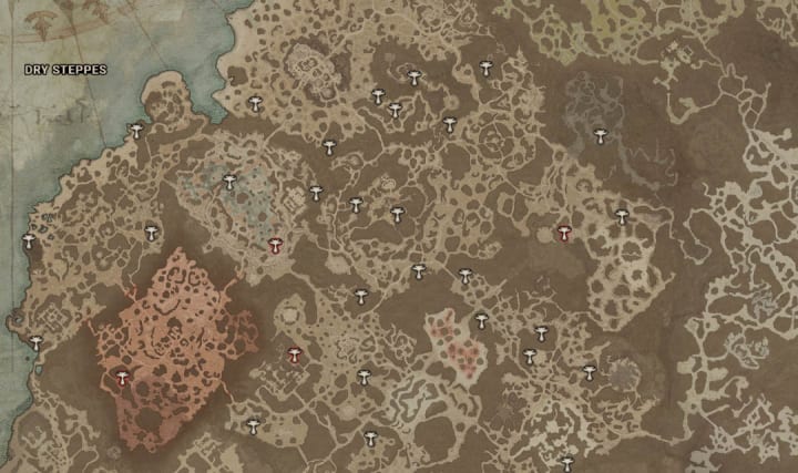 There are 33 Altars of Lilith scattered across the Dry Steppes. The 29 altars in this area will give all characters on your account +2 to one of the four core stats, and the other four will provide all your characters an extra Paragon point.