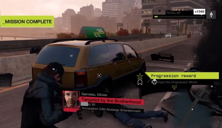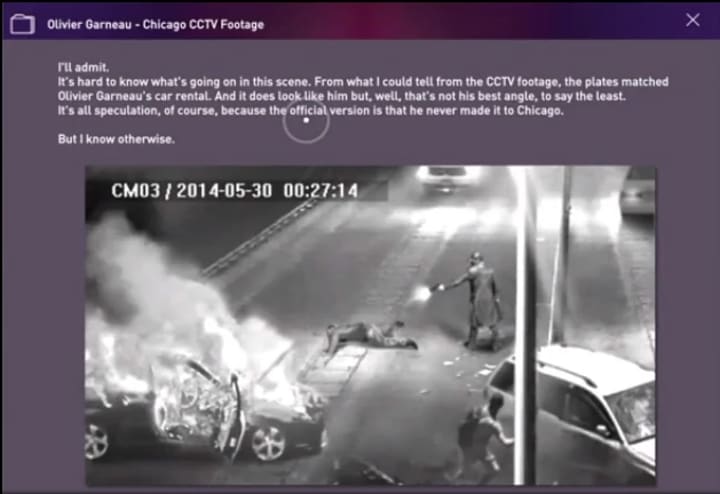 Not only is this Olivier Garneau, C.C.O. of Abstergo Entertainment, but it even says that he is being targeted by "The Brotherhood." The Brotherhood meaning the Brotherhood of Assassins. In Assassin's Creed IV: Black Flag, it is mentioned that Garneau was going to a shareholder's meeting in Chicago, but he went missing. Just a year later Ubisoft told us what actually happened in a completely different game.