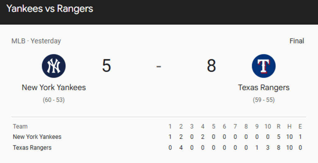 The Yankees, currently leading the season series 3–0, have an opportunity to assert dominance and reestablish themselves as serious contenders in the American League. For the Rangers, these next two games are about pride, positioning, and proving they can hang with the best.