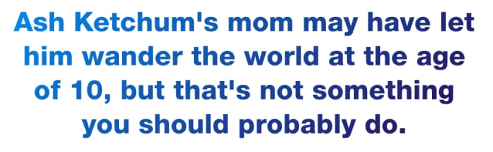 Think of it like trick-or-treating or geocaching. If you wouldn't let your kids wander the streets alone, then you shouldn't let them go catch virtual Pokemon alone either. You want to make sure you're with your kids. Ash Ketchum's mom may have let him wander the world at the age of 10, but that's not something you should probably do.