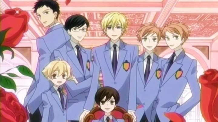 This is a fun romantic anime! It starts off with a girl walking in a room and breaking a vase. This room has six rich boys (who mistake her for a guy) and they have recruited her to pay back that almost priceless vase and she must become "one of them." Each of the boys slowly start to fall in love with her and have fun adventures on the way. #Senpai
