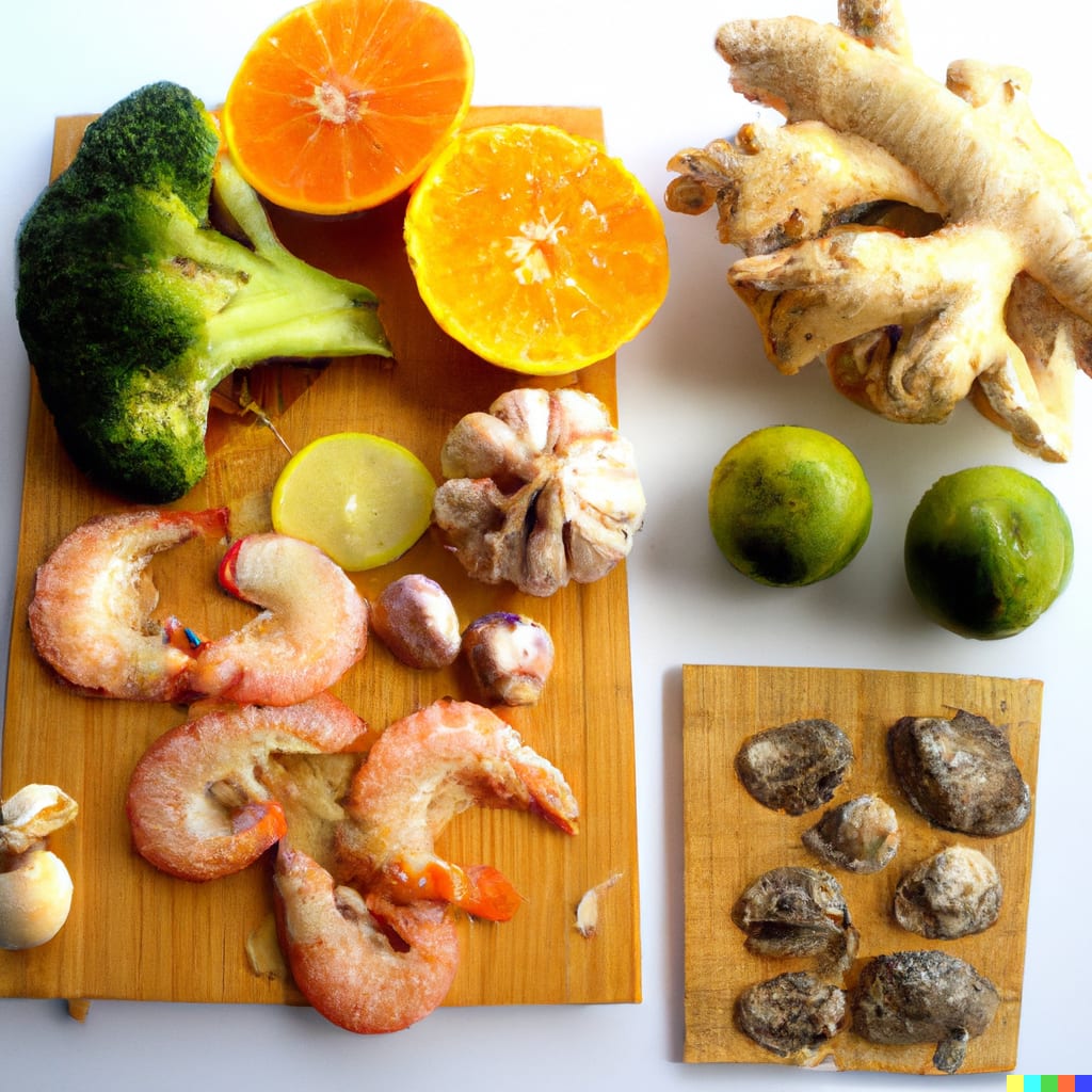 Shellfish such as oysters, crab, and clams are rich in zinc, which is an essential nutrient for immune function. Zinc helps stimulate the production of white blood cells and can help reduce the duration and severity of infections. Shellfish are also a good source of other