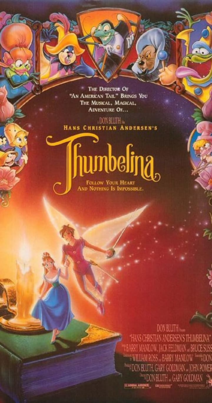 Another Don Bluth film with breathtaking animation and music to make your heart soar, you’ll never be able to look away. This classic follows the tiny girl, named Thumbelina, on her journey to be United with her love, the fairy Prince Cornelius. With songs that get stuck in your head, and some kind of creepy frogs, she finds her way back to her man, and they survive the cold and heartless winter, barely.