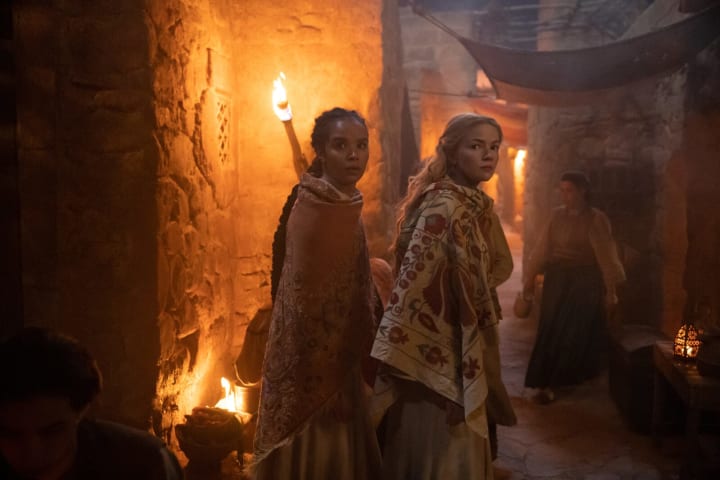 For starters, the capital city of Tarabon will have a tropical setting. In one of the sets, there is a bar built that was so cosy that the production crew actually went there to chill after filming for the day was done! It is for a scene in which Nynaeve (Zoë Robins) and Elayne (Ceara Coveney) find themselves in during their quest to hunt down the Black Ajah.
