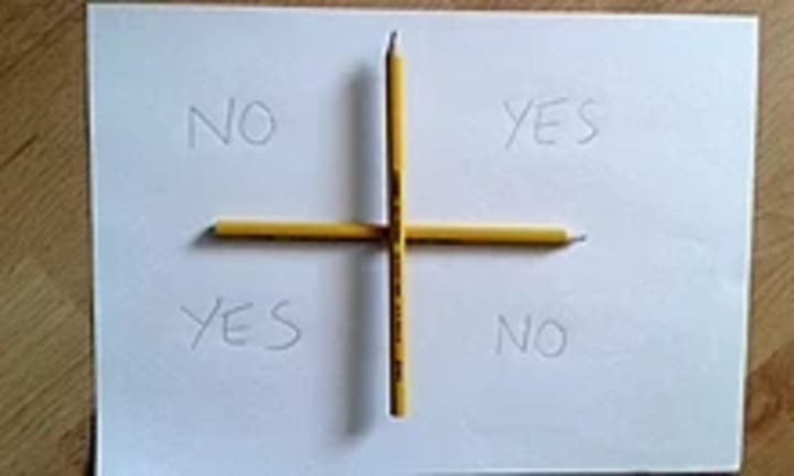 Quite simply, the game is played by stacking two pencils, one above the other on a 2x2 grid of Yeses and Nos. Players then ask questions to Charlie who moves the pencil to either a yes or a no.