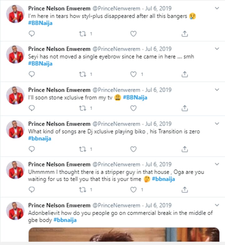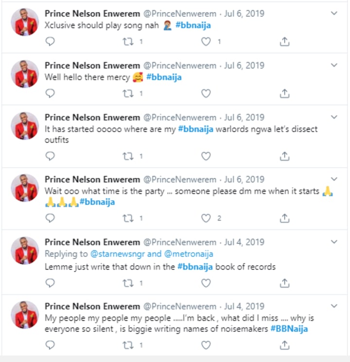 When the last season of Big Brother Naija was on, Prince dedicated his Twitter and social media to dissecting and talking about BBNaija all the time. How strange that a year later, he was the one on the show and others were tweeting out their thoughts about him on the show. So funny.