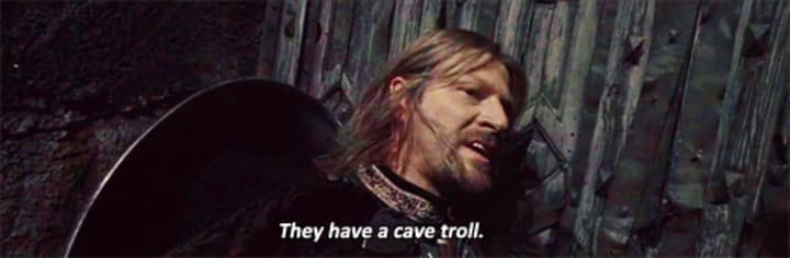 This must have gotten some serious flashbacks for the gang as they aim their forks and knives at the camera with the caption declaring, "They have a cave troll." This being a reference to the race of trolls found within the caves of the Misty Mountains during the battle sequence at Moria. This image certainly could have been 1000% greater had #SeanBean been present, however we will take what we can get!