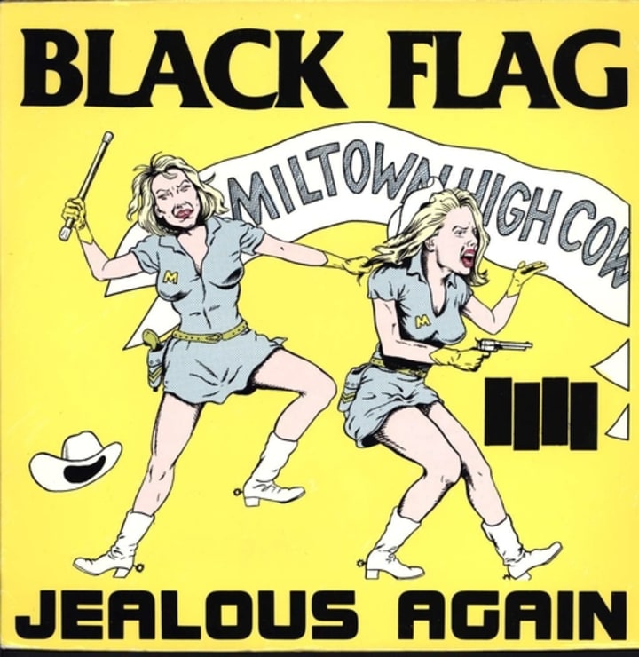 Later on, at the Tylers' holiday home, the same twin can be seen wearing another Black Flag shirt before she is murdered by her double. This shirt has the cover for their album Jealous Again on it, and this appears to foreshadow how that twin's double is later killed by Zora (with a golf club). Not to mention, the characters on the album cover look like twins!