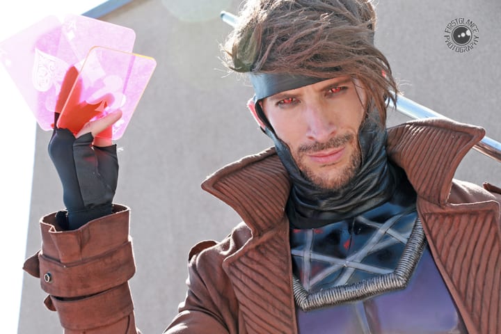 Micheal Huffman is Gambit!! When you cosplay characters you love, you find out how meticulous an artist can be...from the facial hair to the contacts, it takes a certain kind of cosplayer to wear contacts all day, limiting their vision...as well wearing a full length leather coat in the searing heat of San Diego Comic Con.