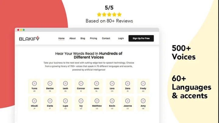 Blakify is an excellent tool that enables you to create voice covers, speeches, and human-like voices directly from any given text. With over 850 natural-sounding voices available in more than 80 different languages, it guarantees to give you unlimited voice options to choose from. Blakify also offers full commercial rights to use the voices anywhere you want.