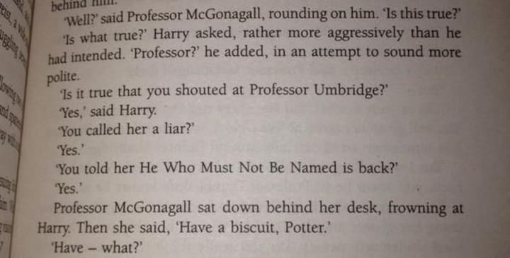 Arguably one of the most iconic lines of the series, this interaction offered some comic relief to an otherwise tense situation. Order of the Phoenix saw McGonagall at her fiercest, as she dutifully defended Dumbledore, resisted the return of Voldemort, and put the much-despised Dolores Umbridge in her place.
