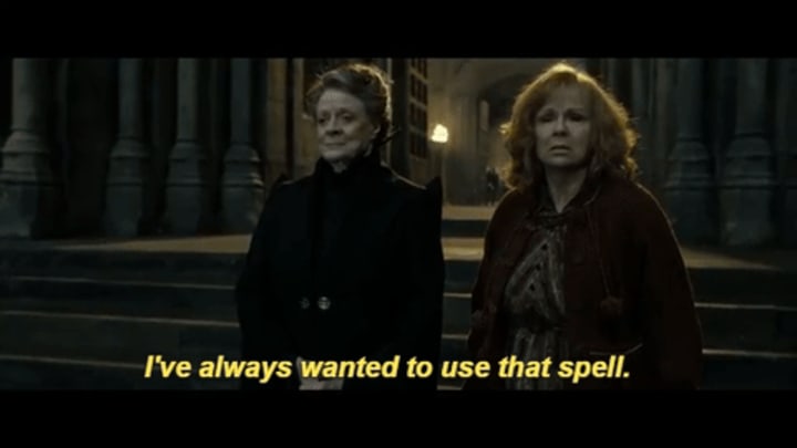 Smith nailed the role, solidifying the stern Transfiguration professor as one of my all-time favorite fictional characters. But, to my immense disappointment, some of McGonagall’s best literary lines didn't make it to the big screen. So, in honor of Gryffindor House's most badass witch, here are five great scenes we didn’t get, five we did, and five non-canon additions that hit the mark.