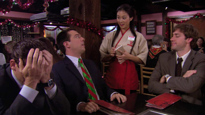 “A Benihana Christmas” is directed by Harold Ramis, whose impressive list of credits includes Ghostbusters, Caddyshack, and Groundhog Day, already making this a must-watch affair before the infamous title screen. This episode sees Michael depressingly round out his love triangle by losing Carol in a photoshop misfire only to go on a wickedly funny yuletide odyssey to a certain restaurant chain only to end up happily in Sandals Jamaica with Jan.
