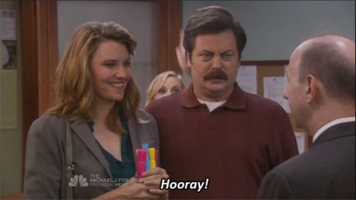 With April as the “best man” and a flustered Leslie finding a bouquet of highlighters, throwing paper bits in the place of rice, this wedding was super-sweet. It was as Chris would say, LIT-ERALLY the best.