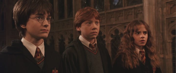 In the first movie, Harry and Ron are somewhat reluctant to befriend Hermione, but by the second film, it's clear that they've grown closer. When she's petrified, the boys feel lost without her, especially after all the effort she's gone to helping them solve the mystery of the heir of Slytherin with the Polyjuice Potion.