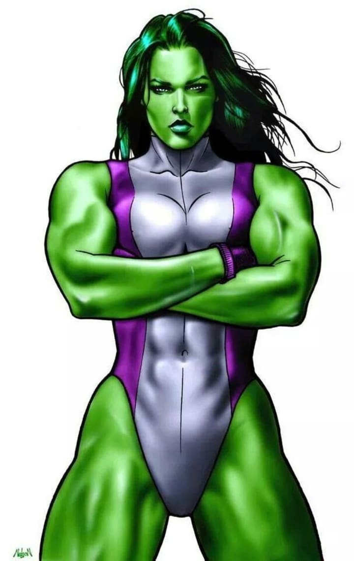 As the cousin of Bruce Banner, Jen Walters received her abilities when she had a transfusion of blood from her gamma-powered cousin. She usually has the ability to change into her She-Hulk form on demand, and usually retains her intellect after the change as well. She's a strong character who tries to balance her life as a lawyer with her life as an Avenger and adventurer.