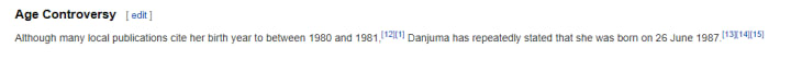 Her Wikipedia page now has a category titled “Age Controversy” where it says: