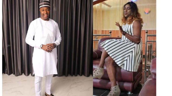 Femi Adebayo caused quite the stir when he took to Instagram to post a video and picture of him wearing a sleeveless gown and a wig. He captioned the picture: