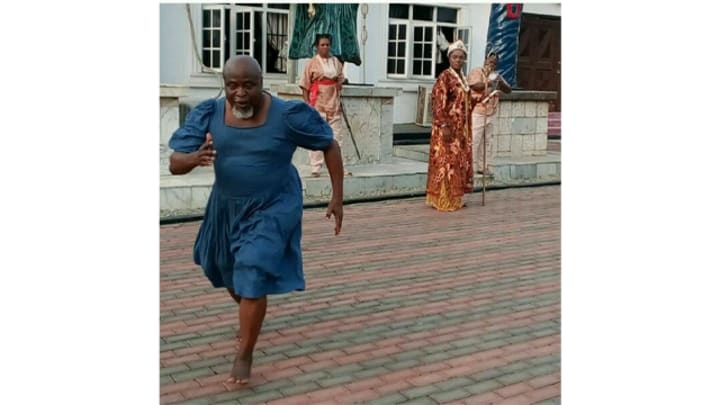 For a movie role starring alongside legendary actress Ngozi Ezeonu, veteran actor Chiwetalu Agu was playing a man who had to disguise himself as a woman to befriend Ngozi's character.